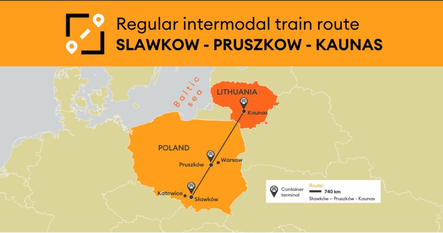 The Sławków-Kaunas intermodal service connects Central Europe with the Baltic States.